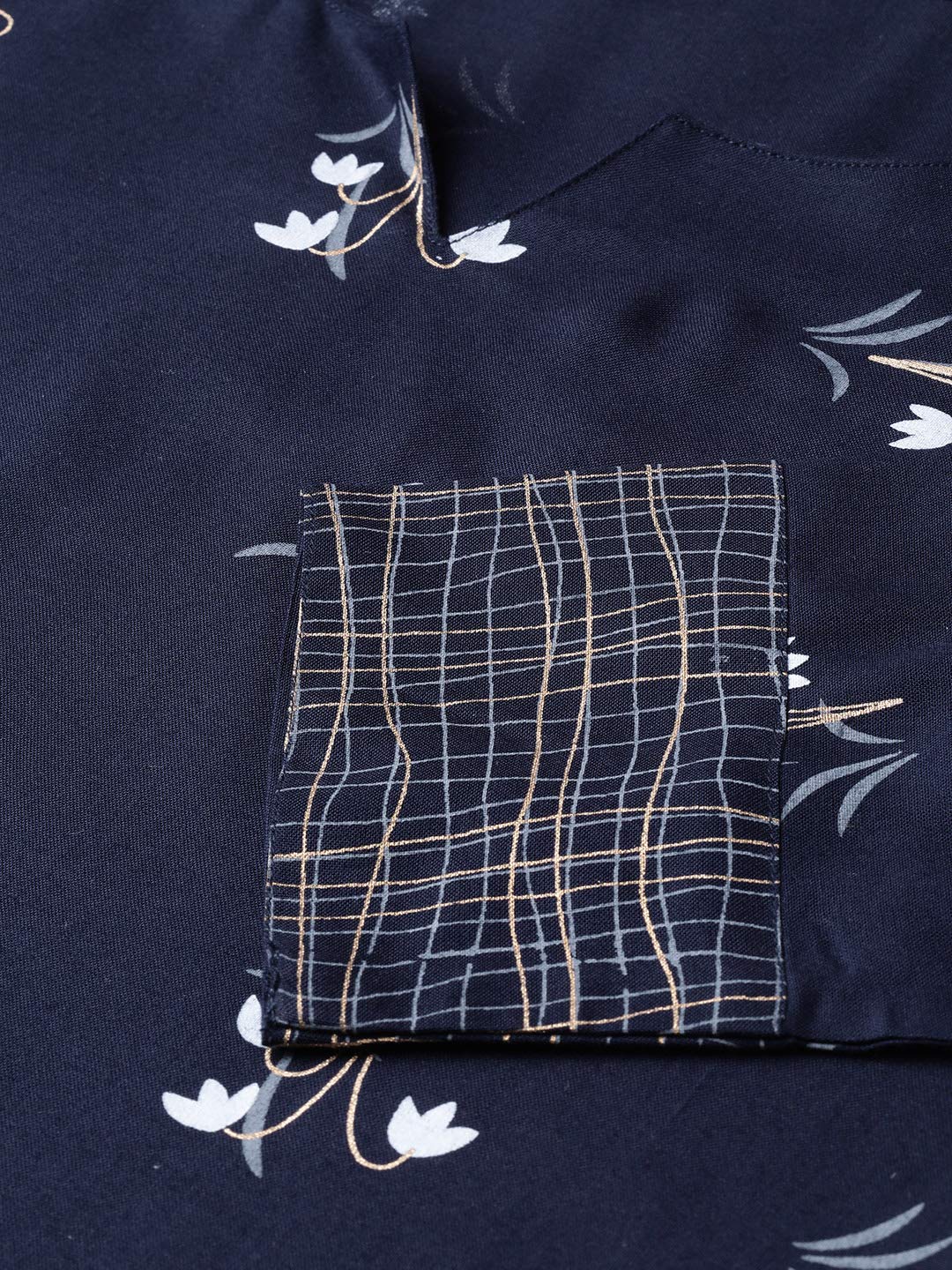 Straight Round V Neck Kurta Having Three Quarter Sleeves, Combining With A Pair Of Printed Palazzo Pants