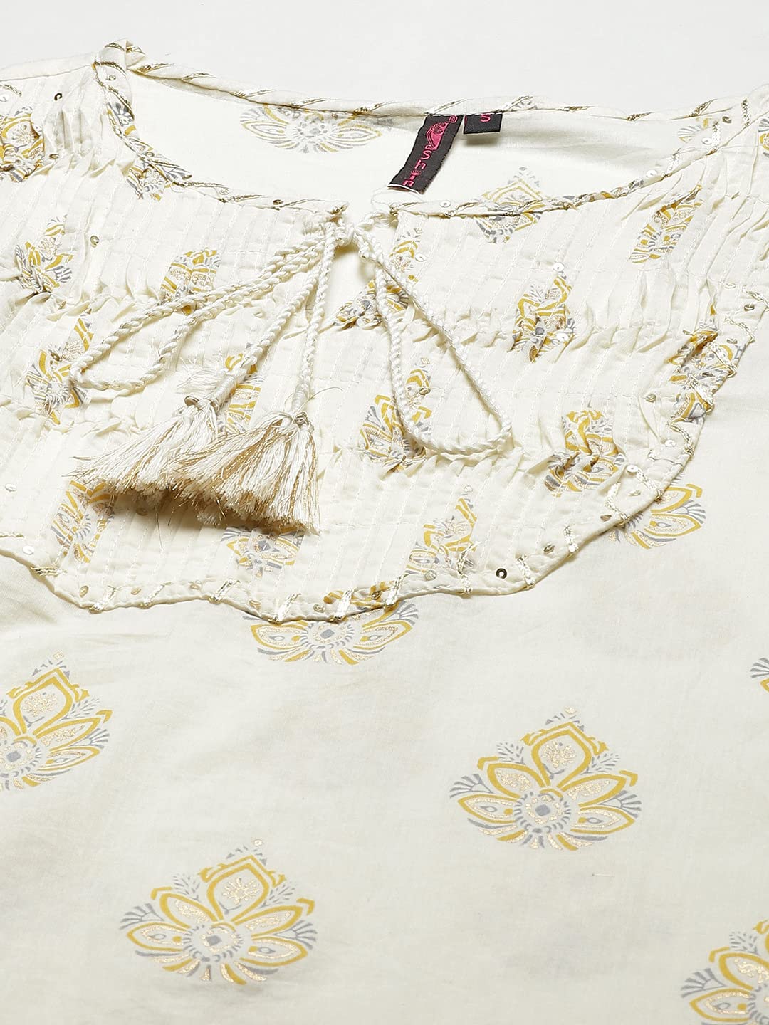 Ishin Women'S Cotton Blend Embroidered A-Line Kurta Suit Set With Sharara Kplnavje-18083_S_Cream