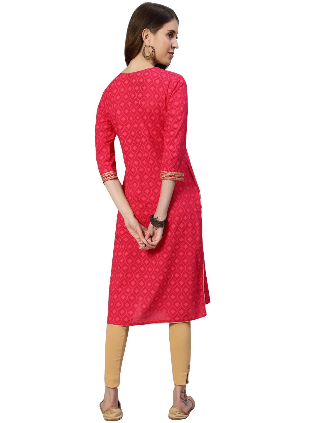 Pink Embroidered A-Line Kurta. Has Sweetheart Neck, Three Quarter Regular Sleeves, Straight Hem With Side Slits.