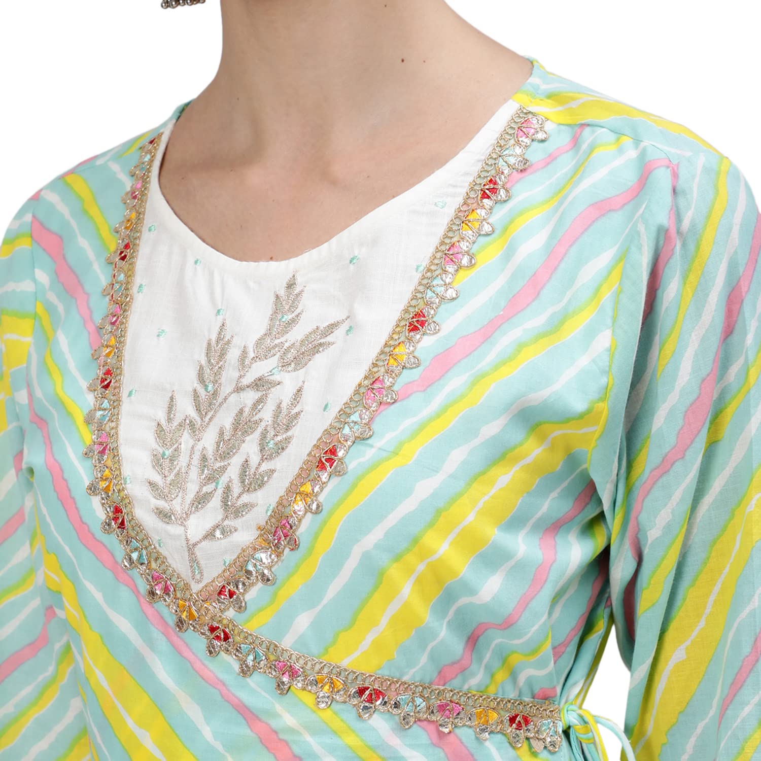 Ishin Women's Cotton Chevron Print Embroidered Anarkali Kurta