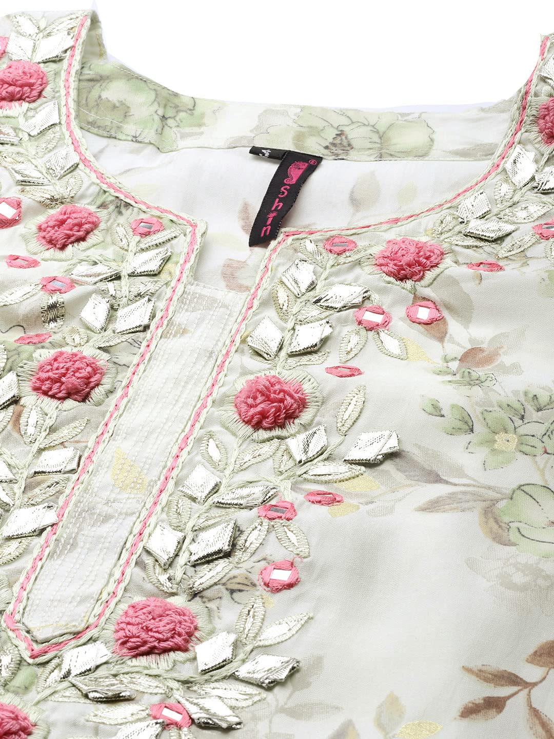 ishin Women's Off White Gotta patti A-Line Kurta set With Trouser and Dupatta
