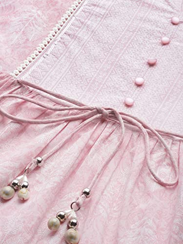 Ishin Women'S Cotton Anarkali Embellished Sequins Floral Print Pink & White Kurti Inwka0146_Pn_L_Pink & White