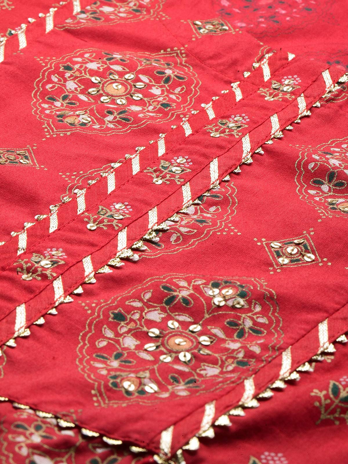 Ishin Women'S Pure Cotton Anarkali Printed Gotta Patti Floral Print Red Kurta Suit Set With Palazzo Kplpramffaw-991_S_Red