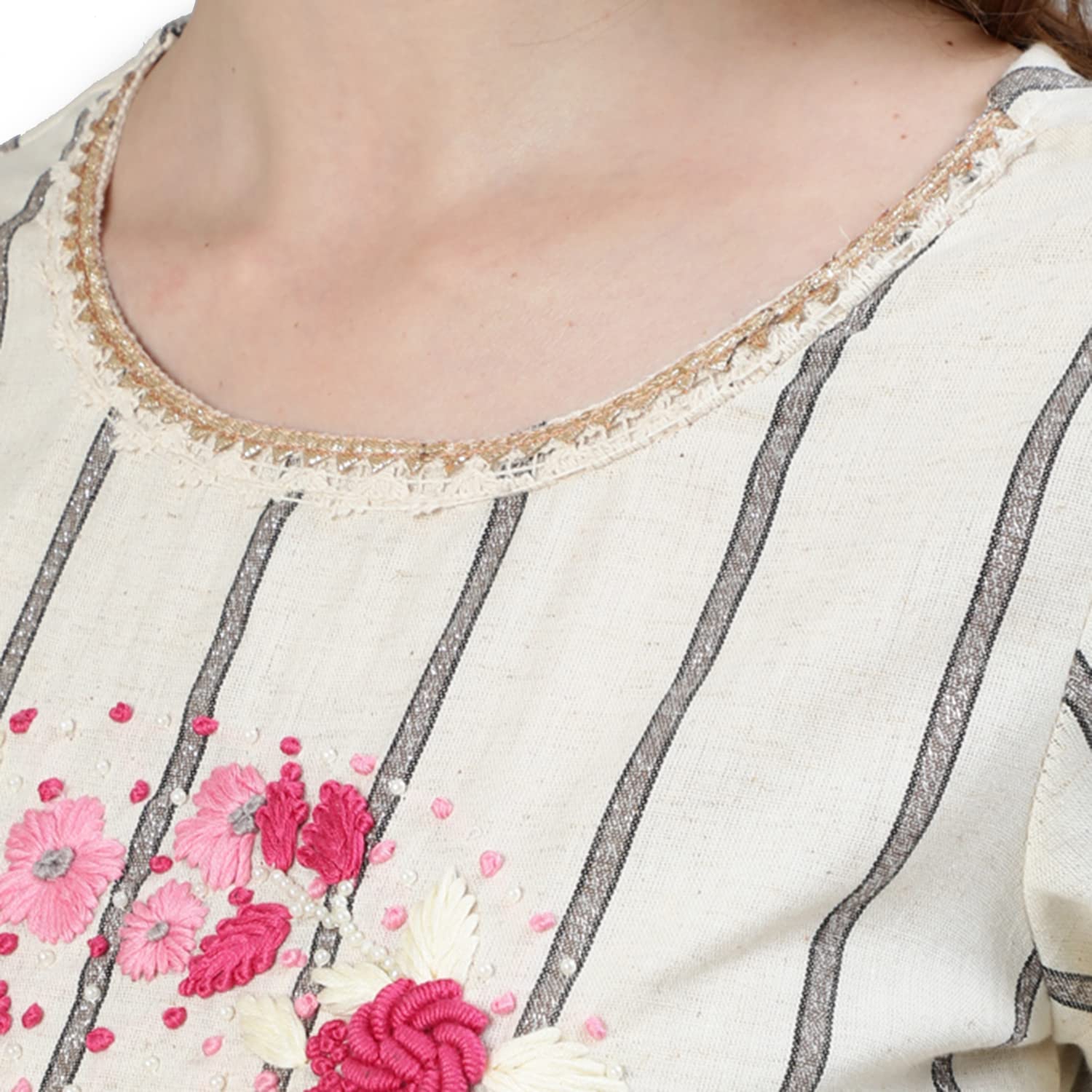 Ishin Womens Pure Cotton Embroidered A-Line Kurta Suit Set With Dupatta & Pants Dhkpldpnk-13044_M_Off White