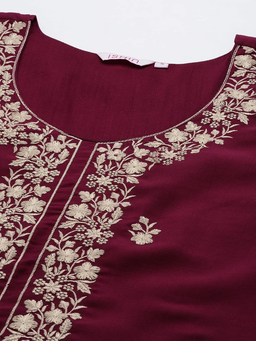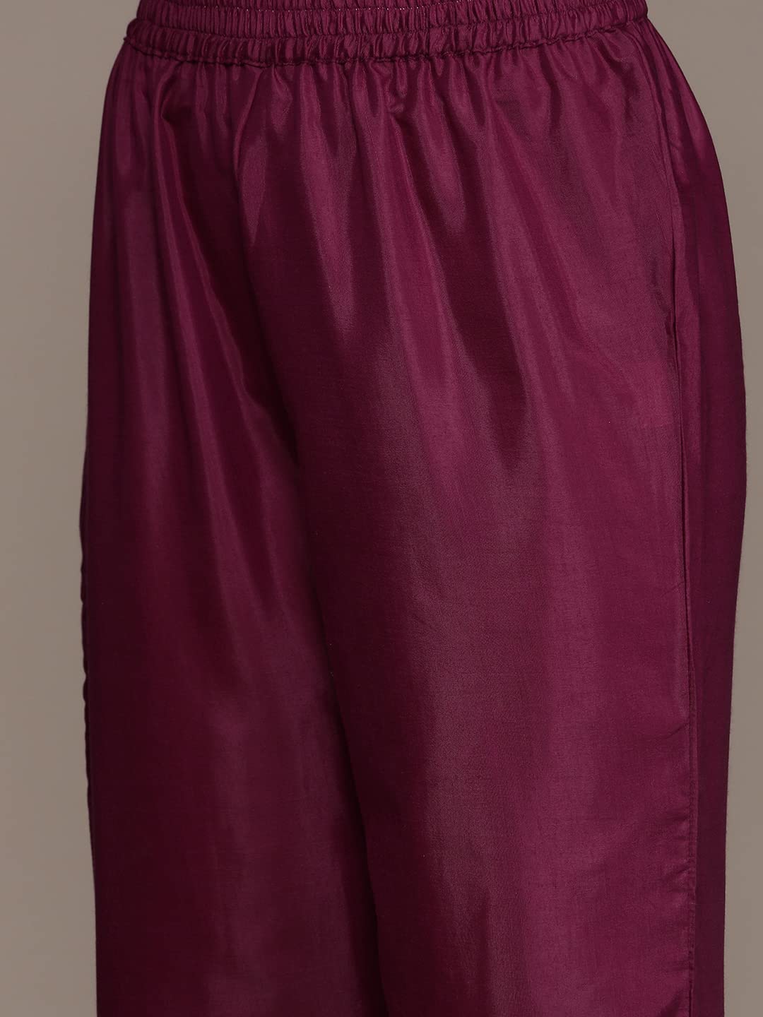 Magenta , Embroidered , Straight Kurta Suit Set , Silk Blend , has Round Neck , Three-Quarter Sleeves , Straight hem