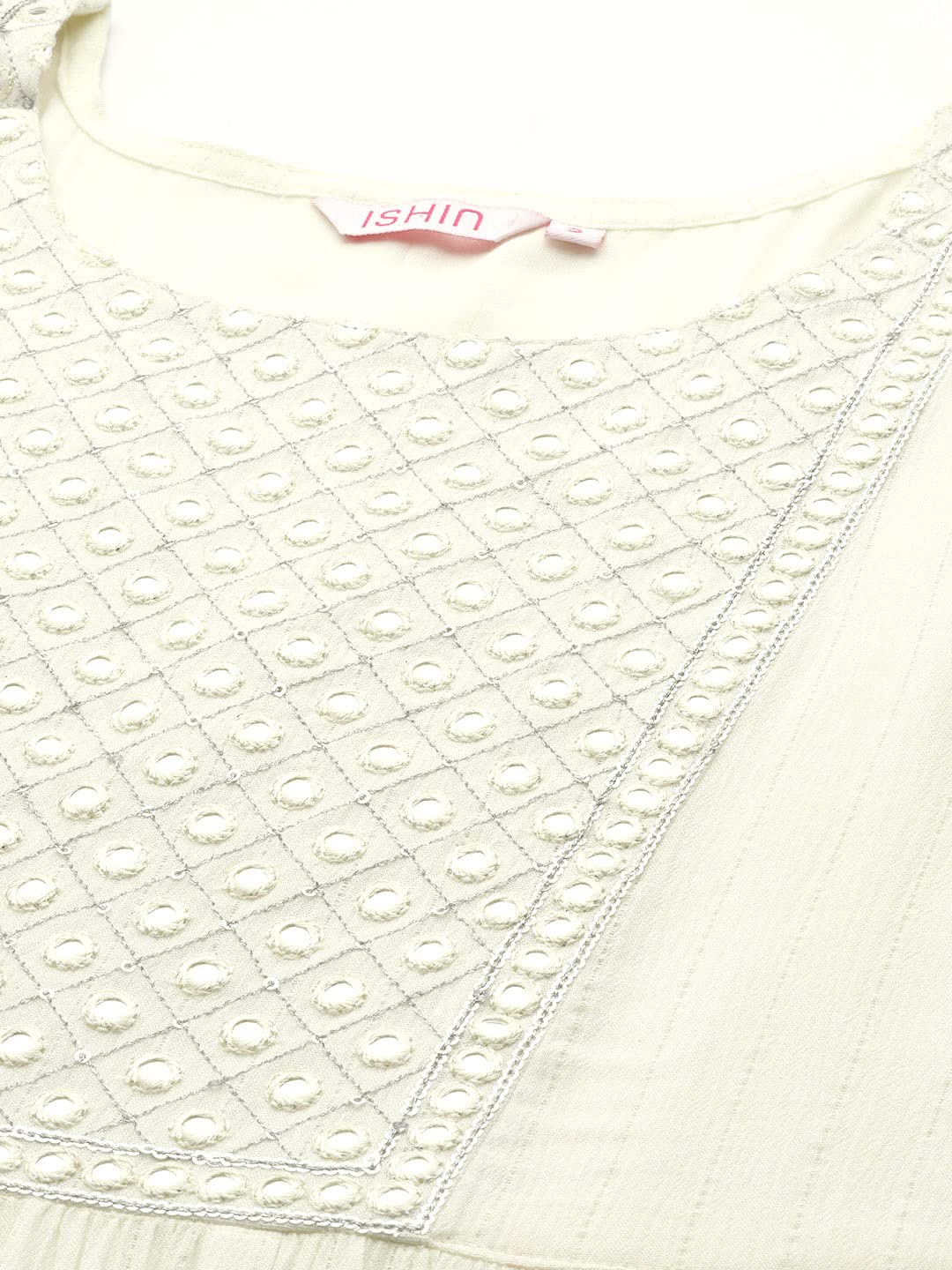 ishin Women's Viscose Rayon Embellished Black Mirror Work Anarkali Kurta