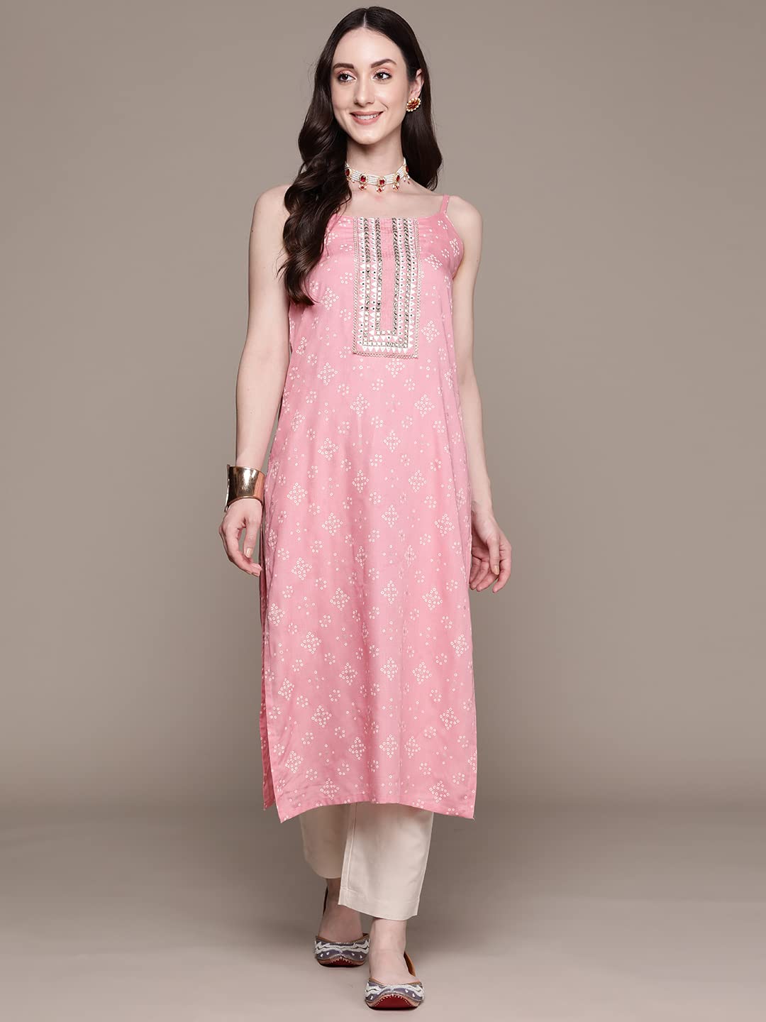 ishin Women's Viscose Rayon Embellished Turquoise Blue Mirror Work Straight Kurta