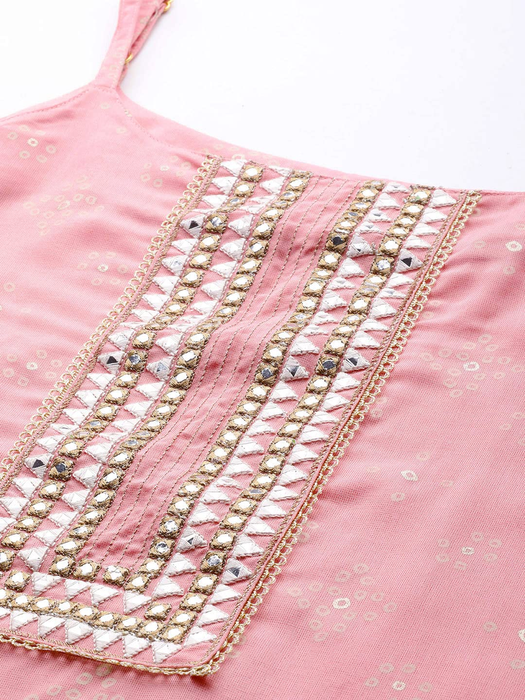 Color-Pink ,Pattern-Embellished,Boat Neck,Sleeveless,Straight,Calf Length