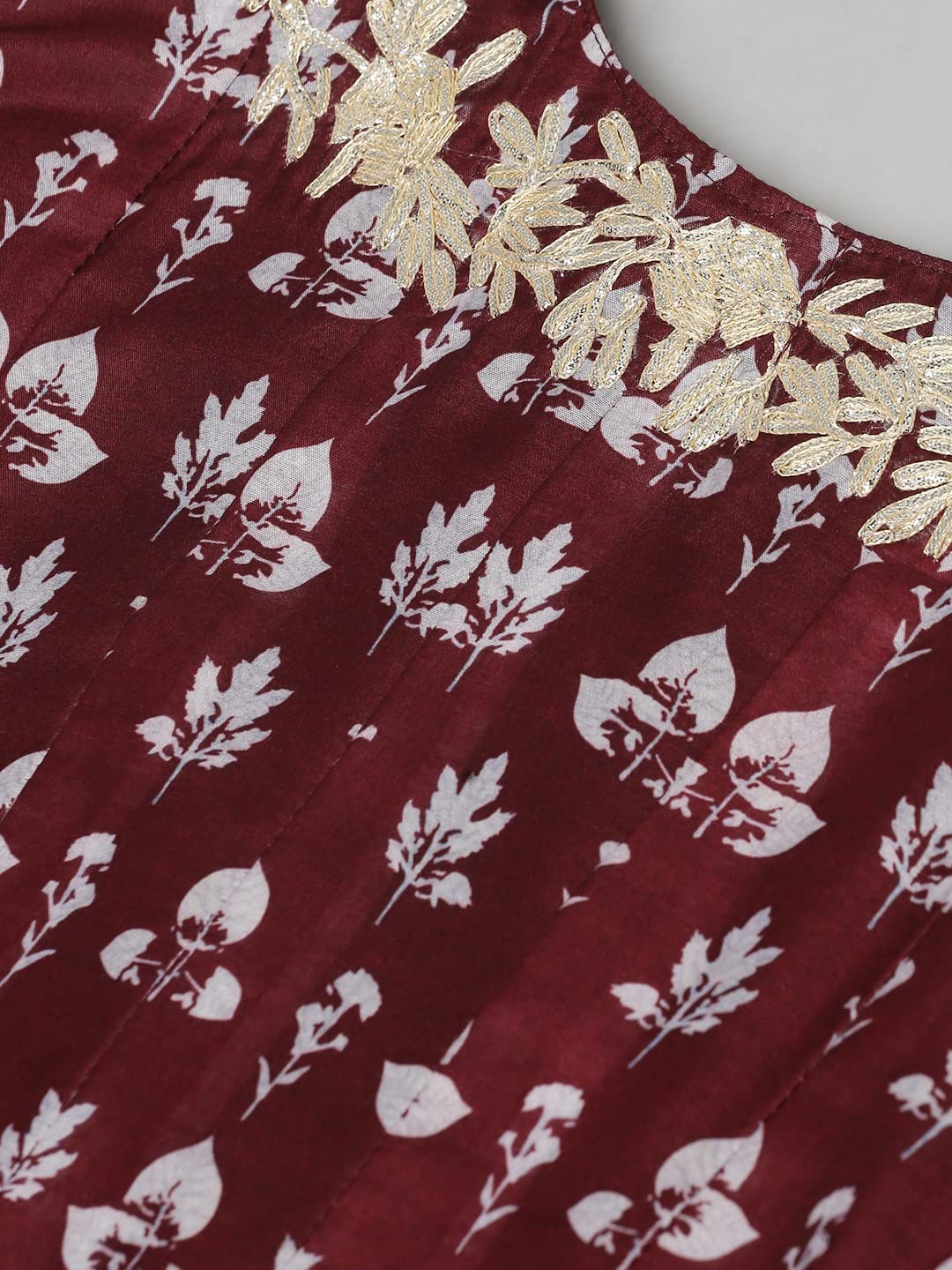 ishin Women's Viscose Rayon Printed Jewel Neck Anarkali Kurta Set with Dupatta