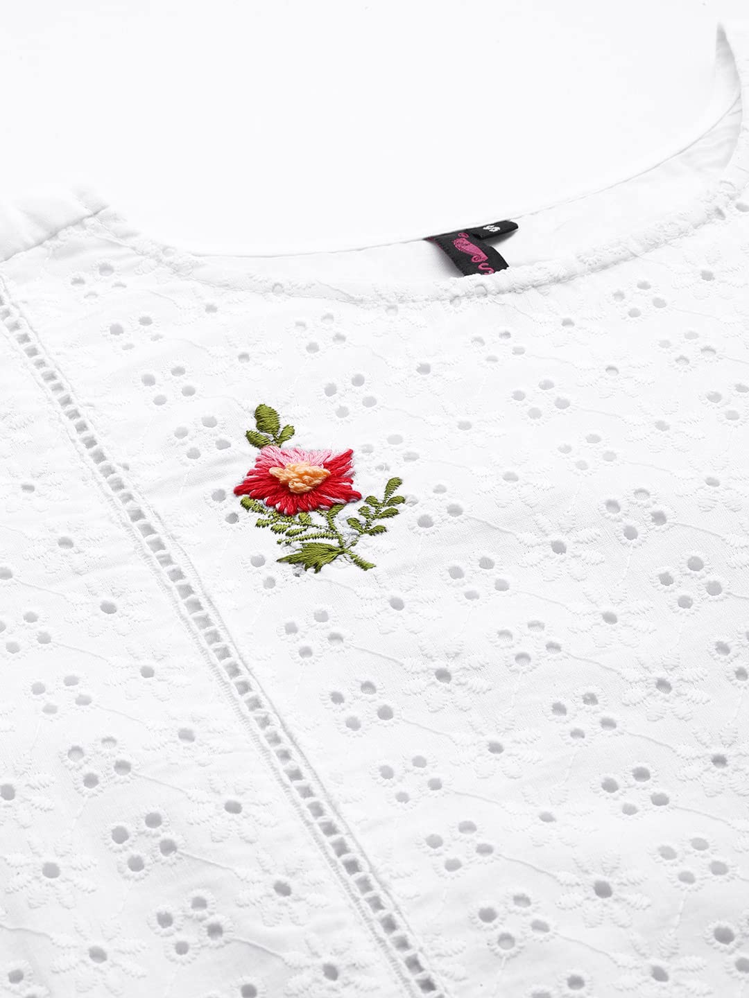 ishin Women's White Schiffli Embroidered Straight Kurta set With Trouser and Dupatta