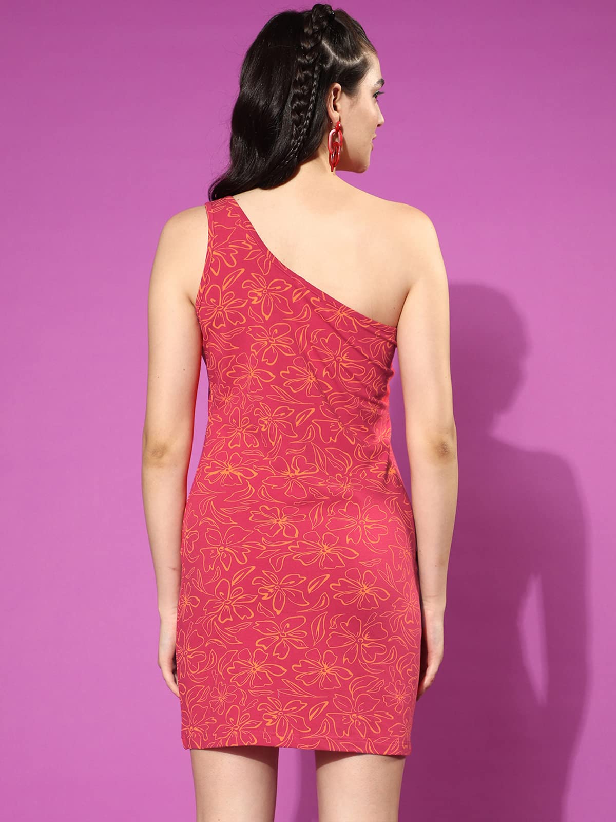 DescriptionSpice Things Up With This Jet-Black And Creamy Beige Sleeveless, Snug Fit, One-Shoulder Floral Print Sheath Dress. One-Shoulder Dresses Look Stunning On All Body Types. They Highlight Beautiful Curves And Are Very Flattering. A Fitted One-Shoulder Dress That Is Above The Knee Is A Great Choice. Choose A Pair Of Statement Earrings, Maybe With Some Tassels Or Geometric Style Detail, Especially If Your Hair Is Styled In A Hairdo Such As A Bun. Go For Rings And Bracelets, But Don'T Go Too Crazy. Keep It Dainty; One Elegant Bracelet Will Be More Than Enough.