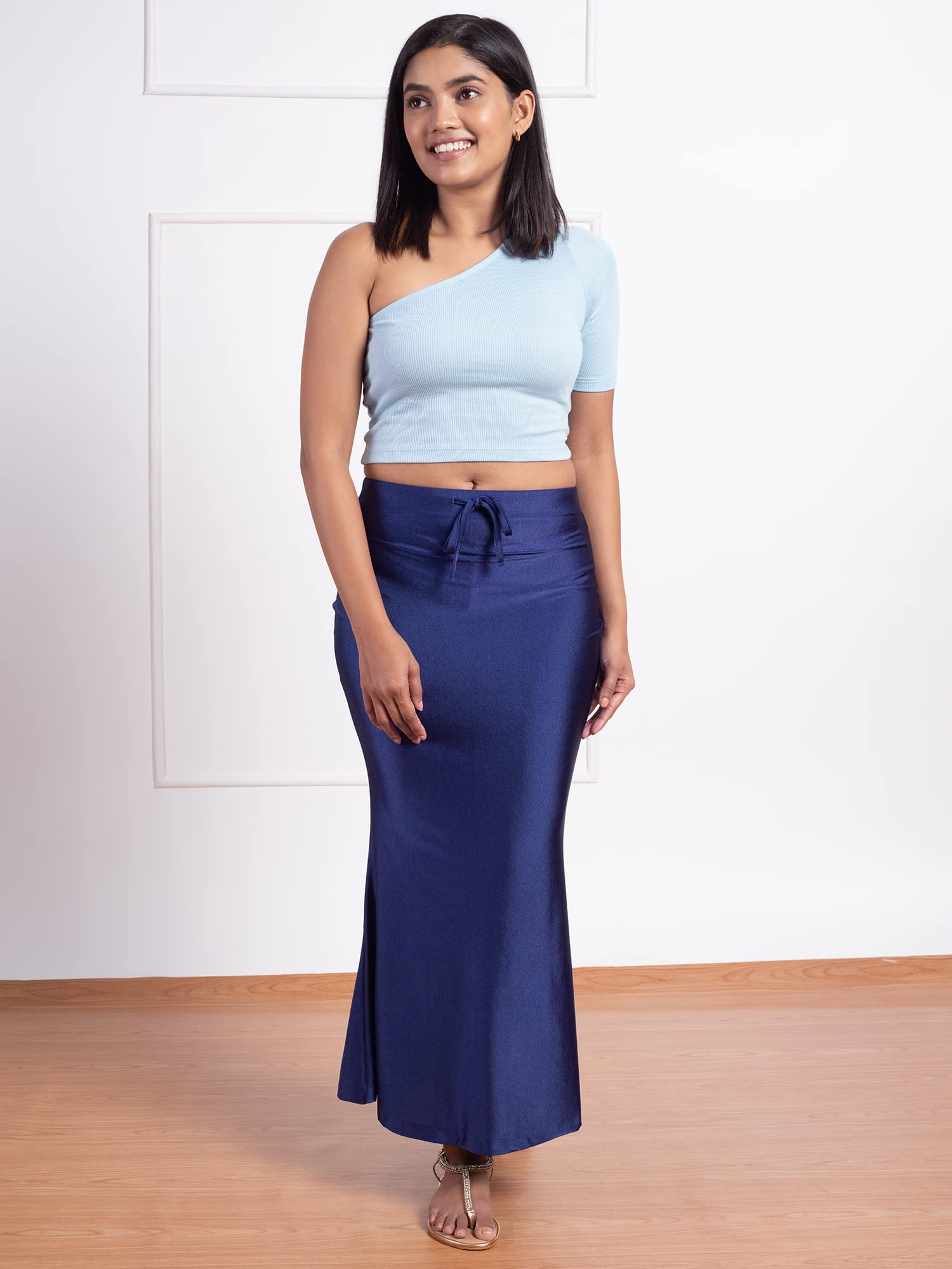 NYKD Everyday Saree Petticoat for Women - Shapewear with Drawstring, Side Slit, Mermaid Cut - Saree Shapewear, NYOE01, NAVY