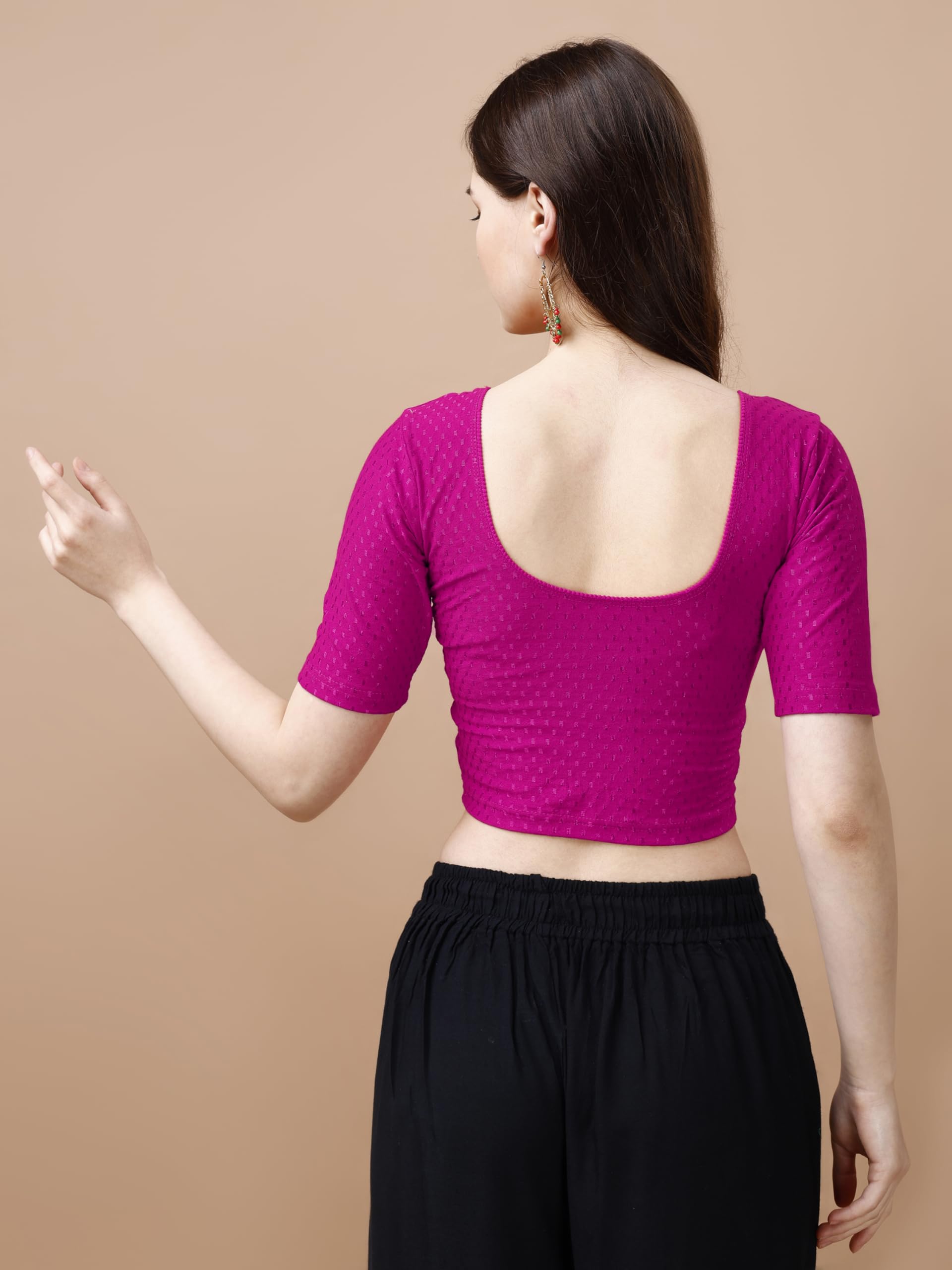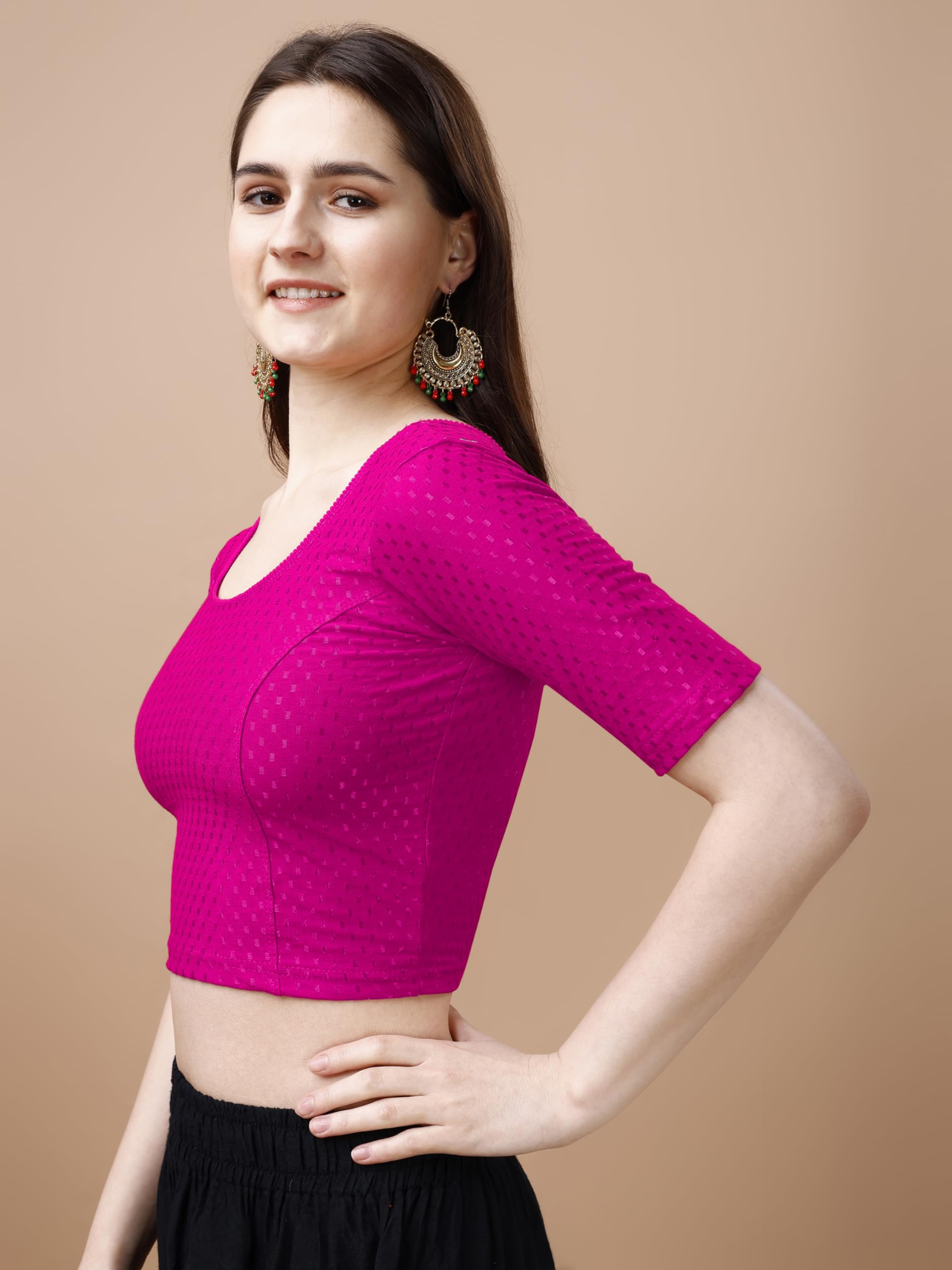 Pujia Mills Womens Readymade Dobby Cotton Lycra Stretchable Round Neck Half Sleeve Blouse Fancy Pink Color Lycra Stretchable Bl