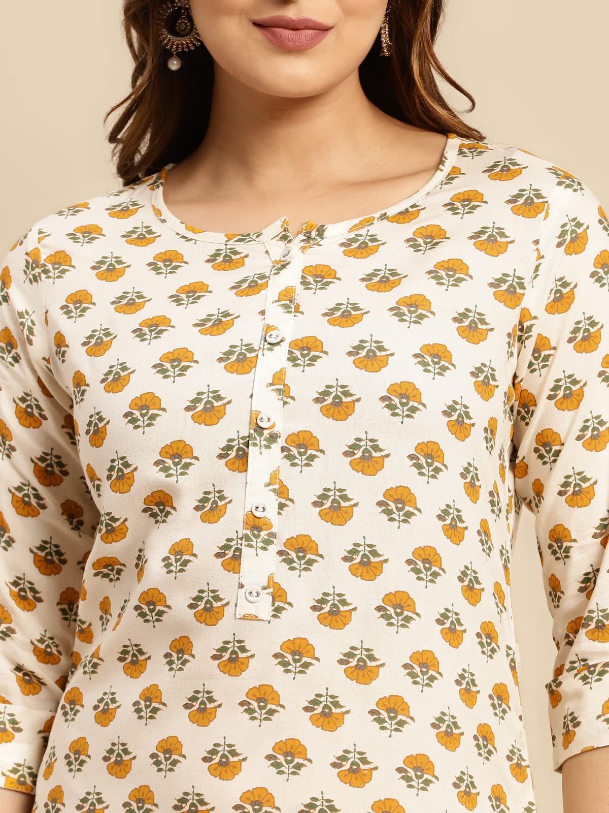 rangita Beige Rayon Calf Length Printed Straight Kurti for Women | Kurta for Women