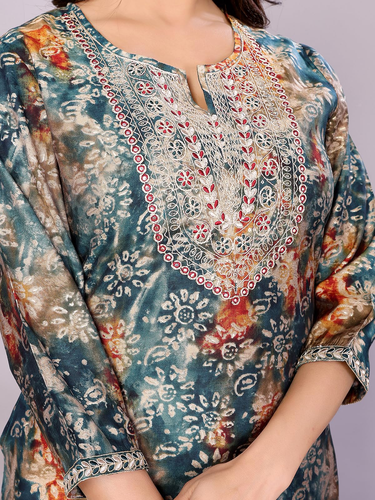 rangita Chanderi Straight Embroidered Calf Length Kurti | Kurta for Women