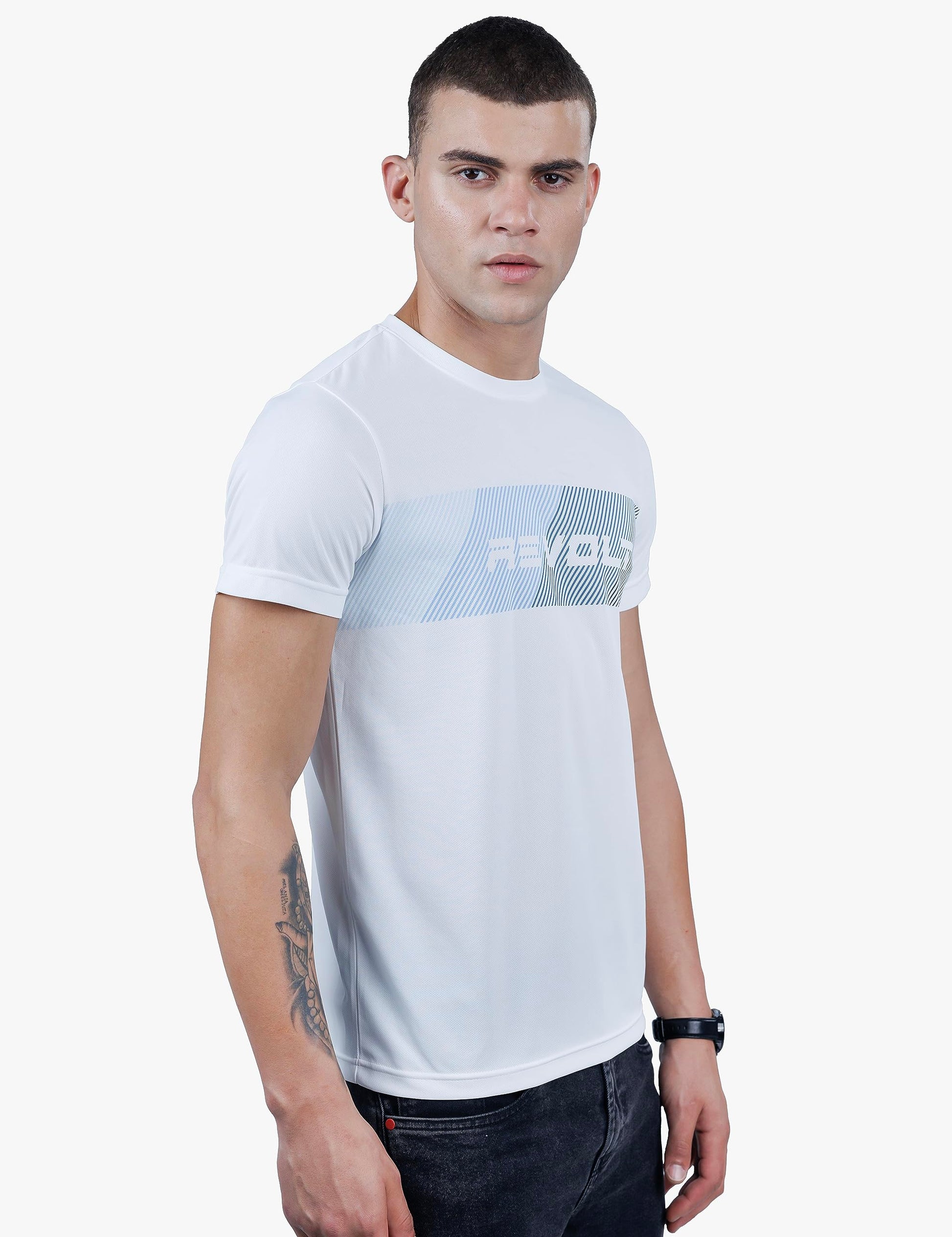 REVOLT Solid Slim Fit Men's Soft & Comfortable Round Neck T-Shirt-Gradation Print, Logo Branding (Cloud Dancer, M) (REVSS23-TEE-