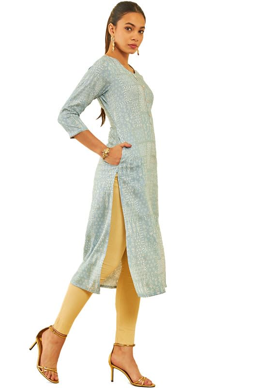Soch Womens Grey Rayon Ethnic Motif Foil Printed Kurta With Gotta Patti