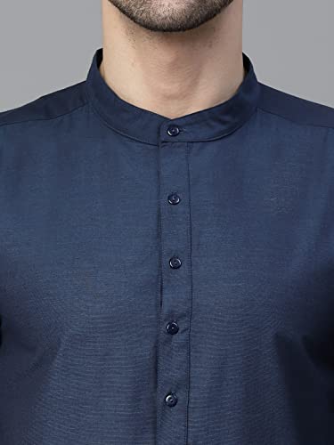 Solid Kurta with Mandarin Collar, Long, Regular Sleeves, Pathani Shape with Regular Style, Knee Length with Curved Hem. Pair it with White Churidar and tan mojri to Elevate The Look