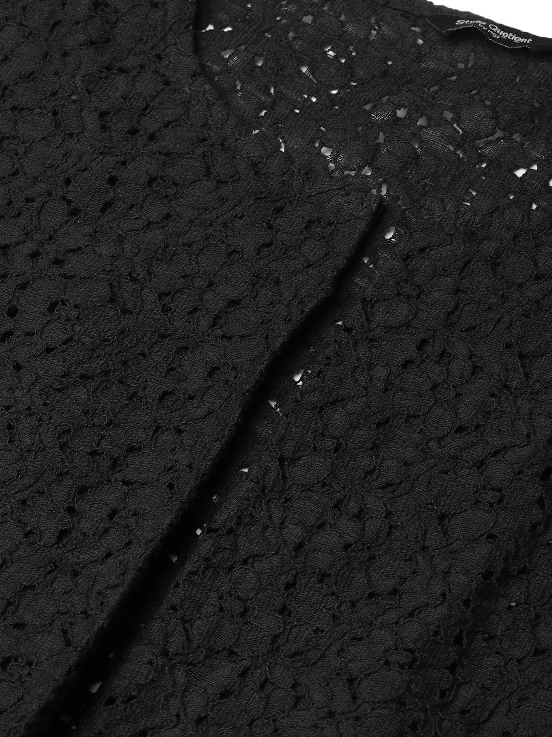 Style Quotient Women Black Self Design Floral lace Regular Open Front Shrug