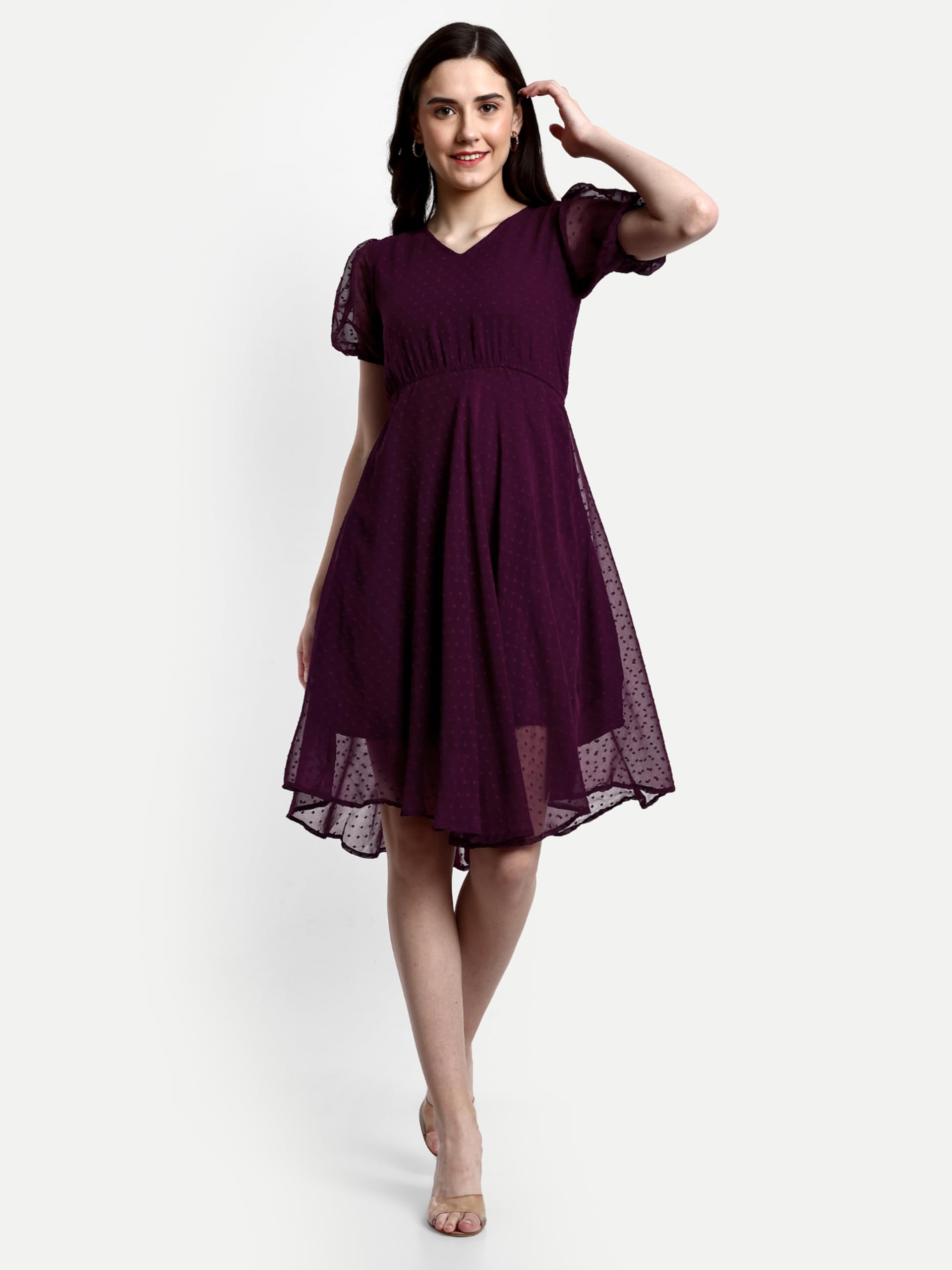 Tagas Women'S Georgette A-Line Knee-Length Dress (Op-3210_Burgundy_Small)