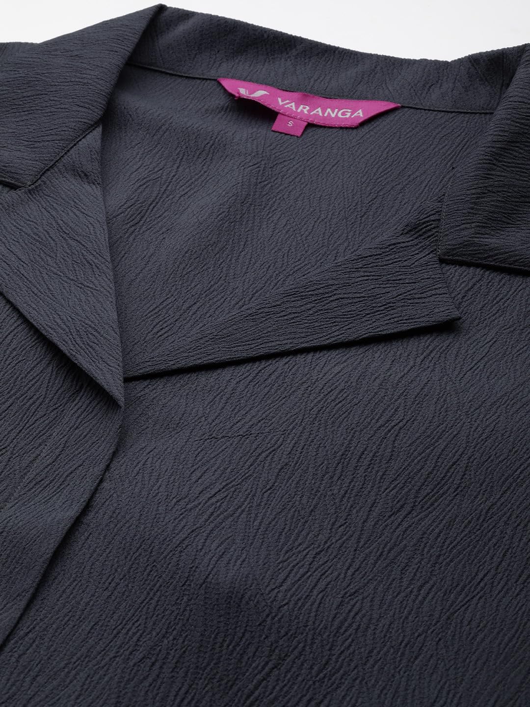 Varanga Women Grey Shirt Collar Neck A-Line Kurta With 3/4Th Sleeves Paired With Tonal Bottoms - Elegant And Comfortable Ethnic Wear (Medium)