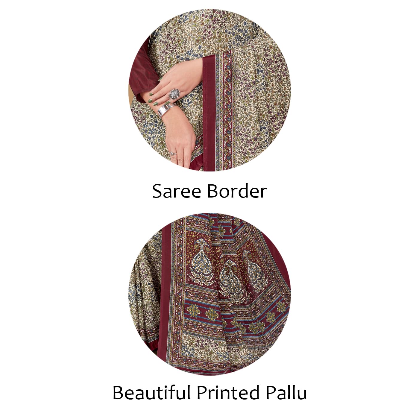 Vimla WomenS Multicolor Crepe Silk Uniform Saree With Blouse Elegant Design For Various Professional Settings