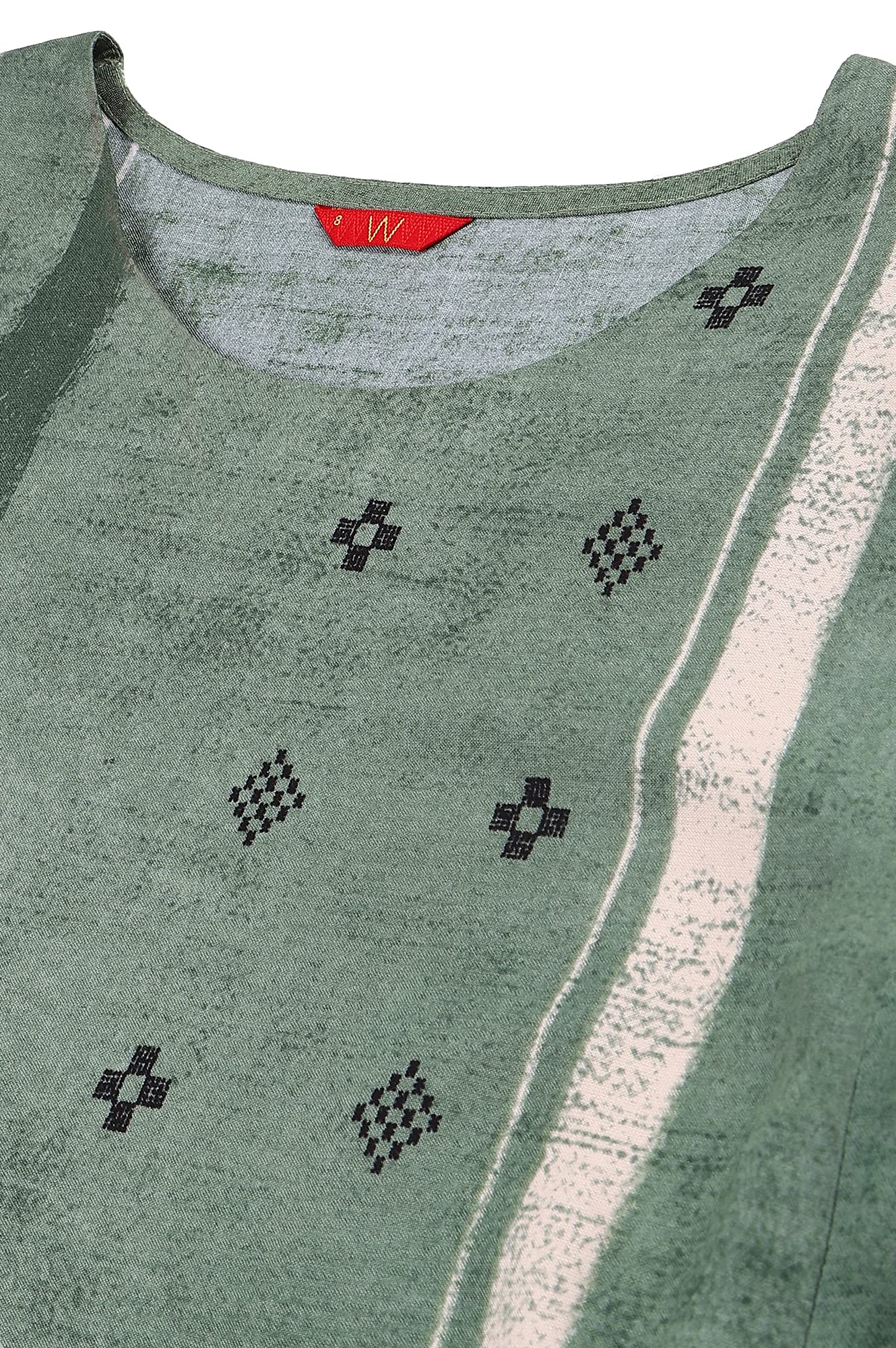 W for Woman Green Godet Box Pleat Kurta