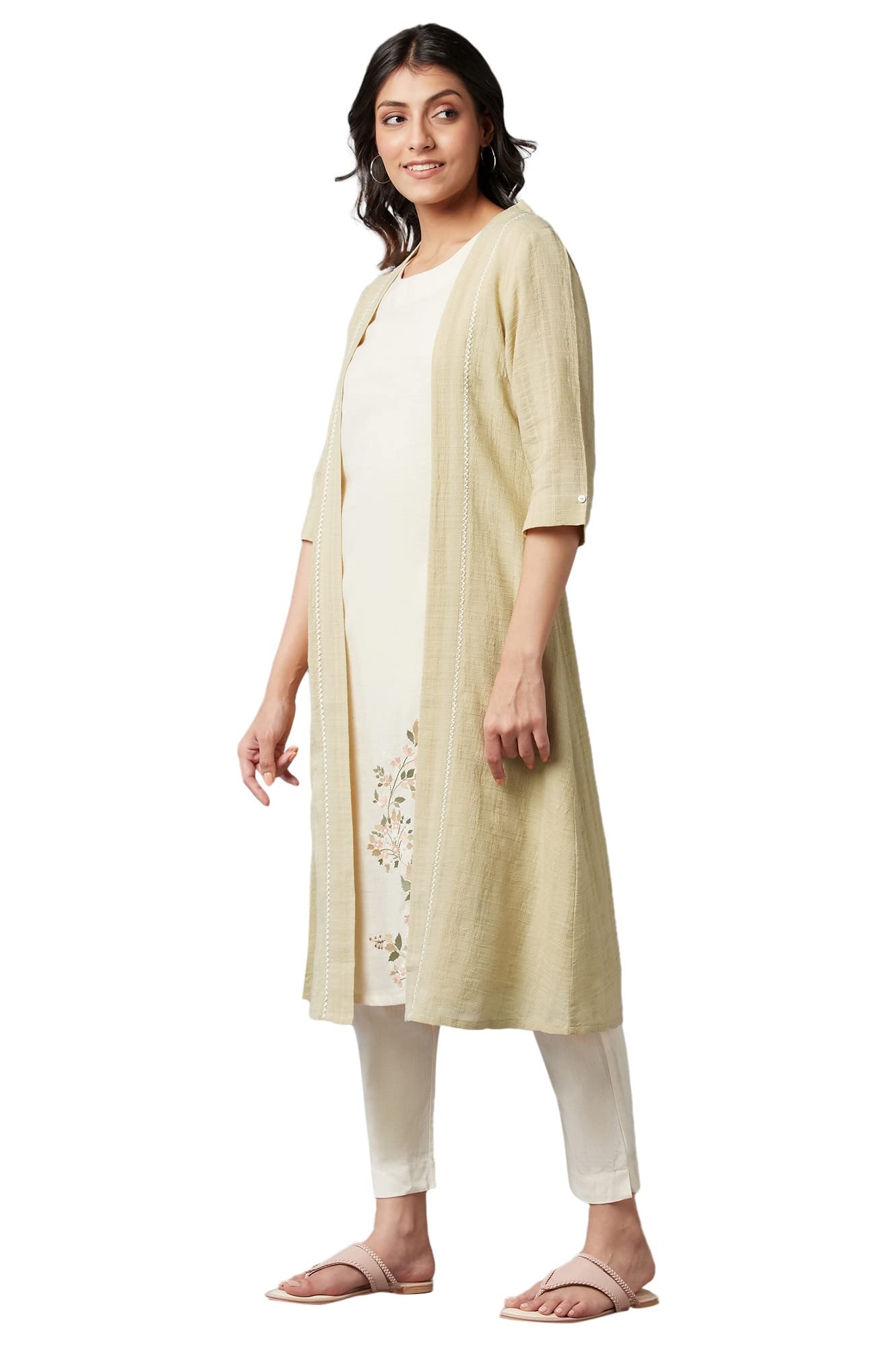 W For Woman Women'S Cotton Solid Inner & Jacket (22Few17785-312360_Ecru_Xl)