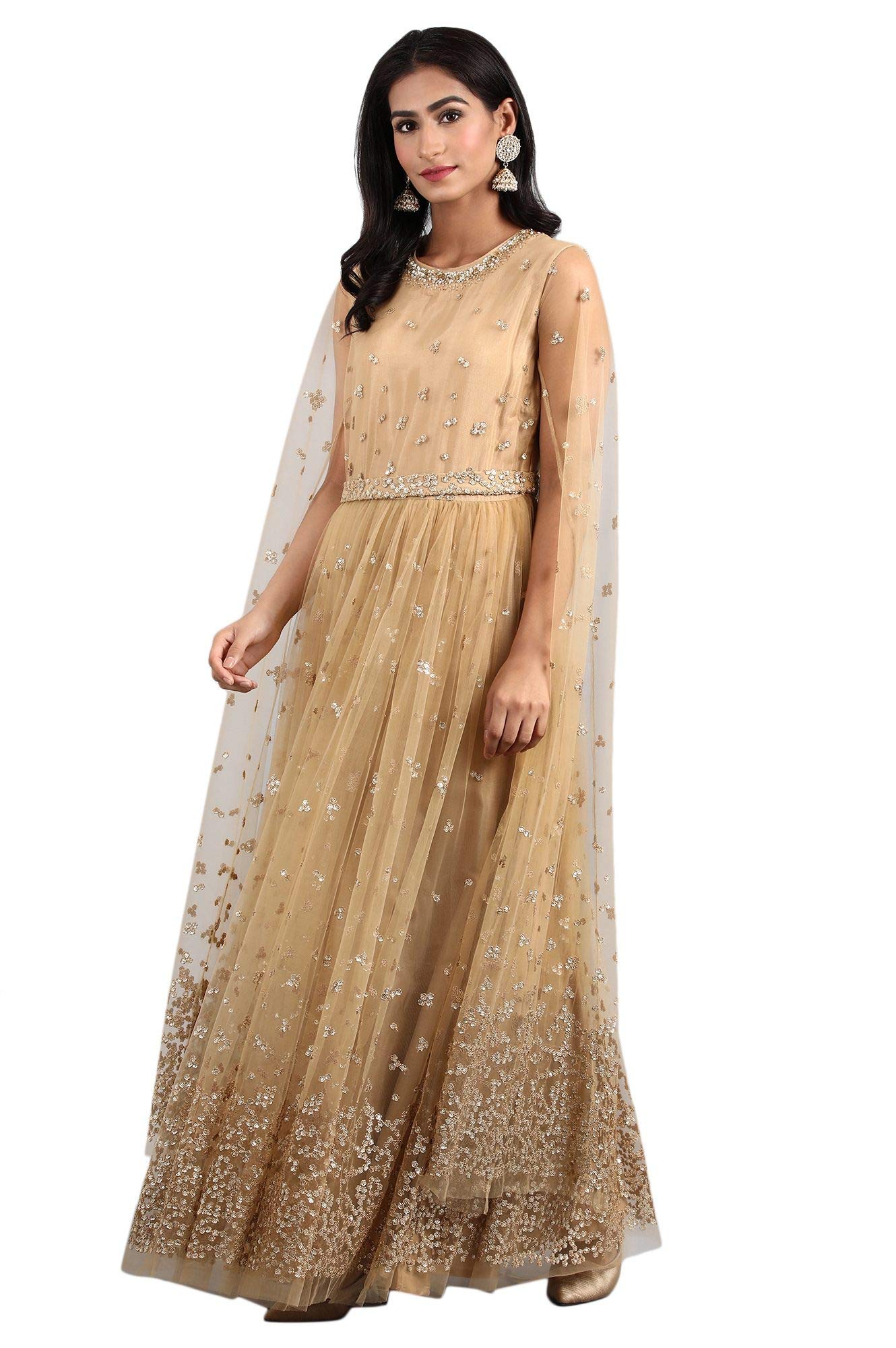 W For Woman Women'S Synthetic A-Line Maxi Dress (19Aus10424-400010_Beige_8 (Small))