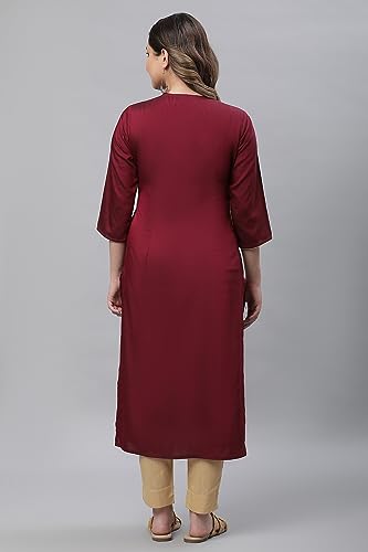 Wine Embroidered Festive Kurta (Size: Xl)-24Aua14761-704675