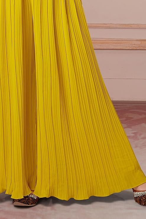 Its Ready to Wear Womens Party wear style palazzo set for Womens . Its sequence embroidery work with floral print jacket And The Georgette Bottom Makes It Look Very Elegant. Best suitable for all occasion like wedding, ceremonial, party, birthday, festival.