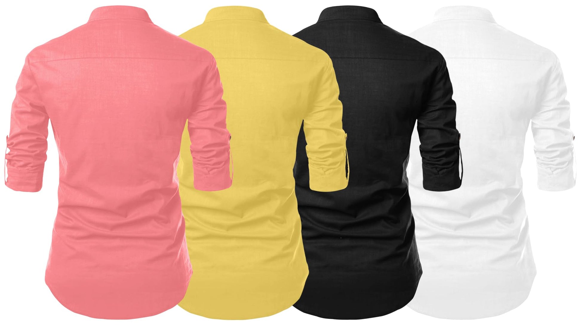 Zombom MenS Cotton Polyester Blend Solid Full Sleeve Regular Fit Kurta Shirt, Multicolor, M, Combo Set Of 4