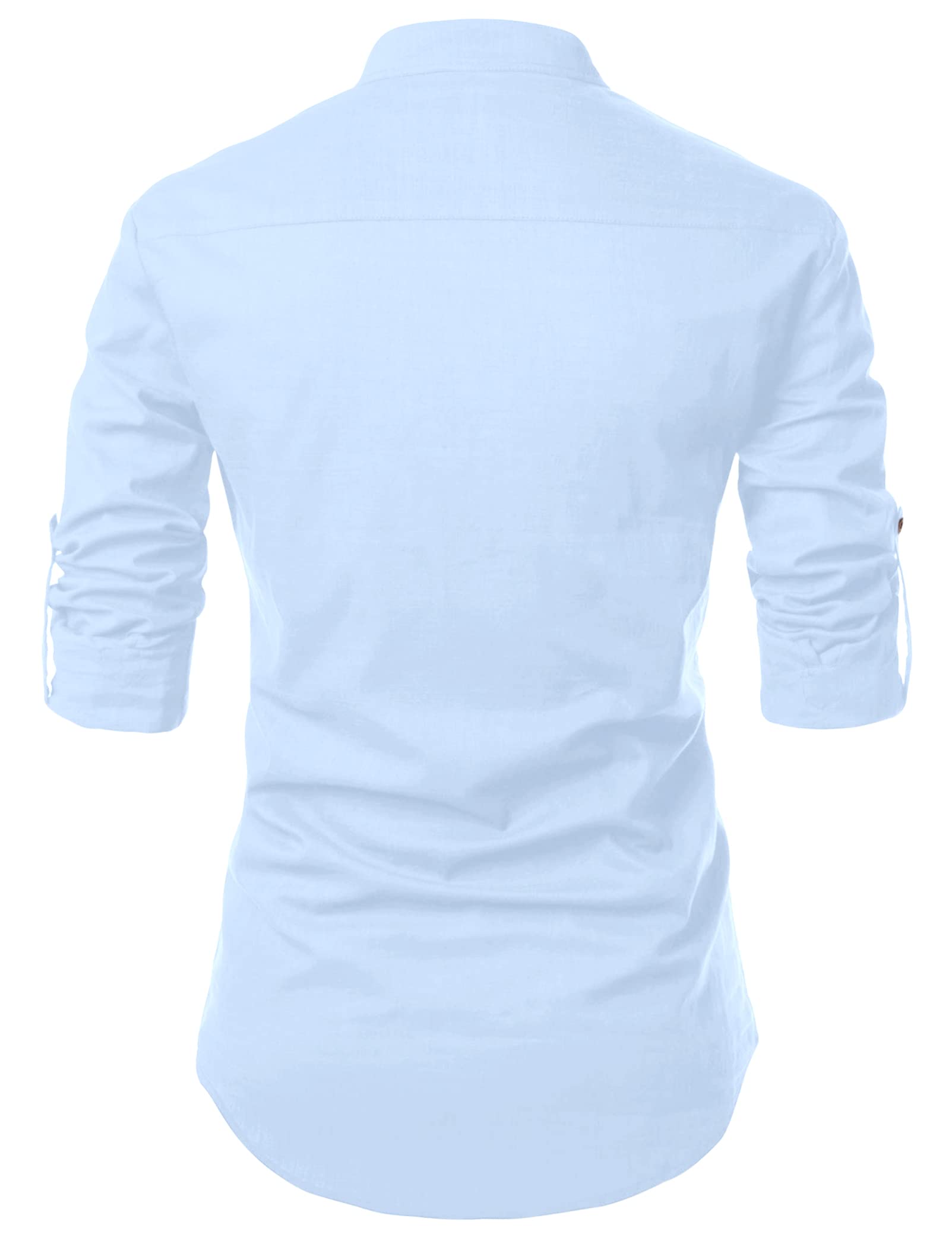 Zombom MenS Solid Cotton Blend Casual Regular Fit Mandarin/Chinese Collor Full Sleeve Kurta Shirt For Men Sky Blue